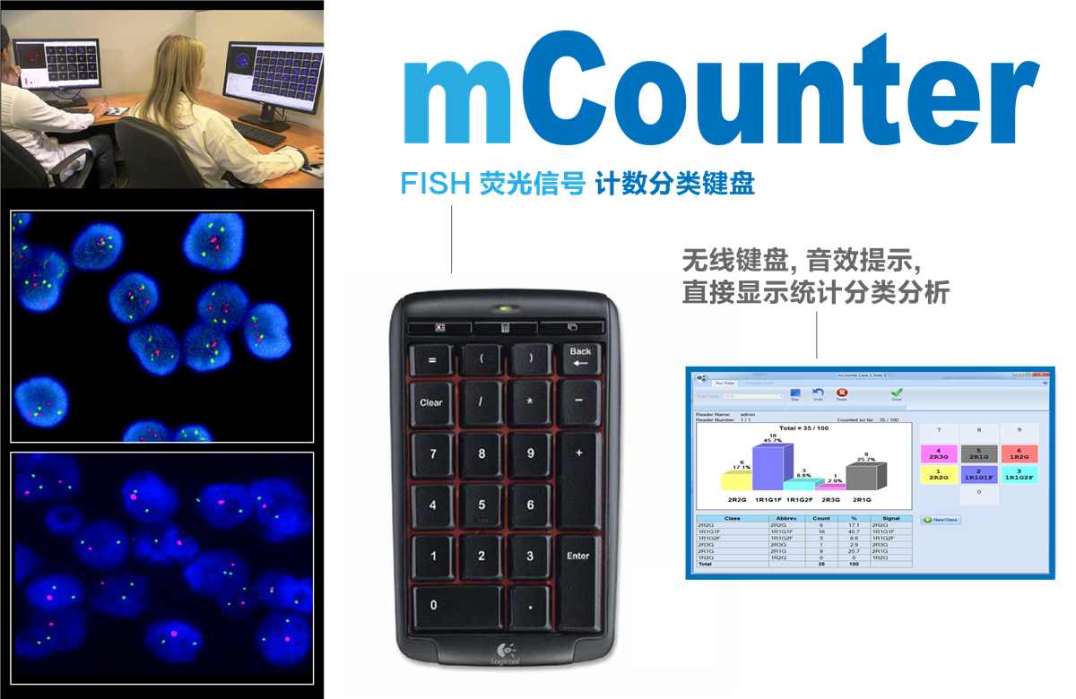 - 每一套 手动FISH 会配置一台mCounter 手动计数FISH荧光讯号光点