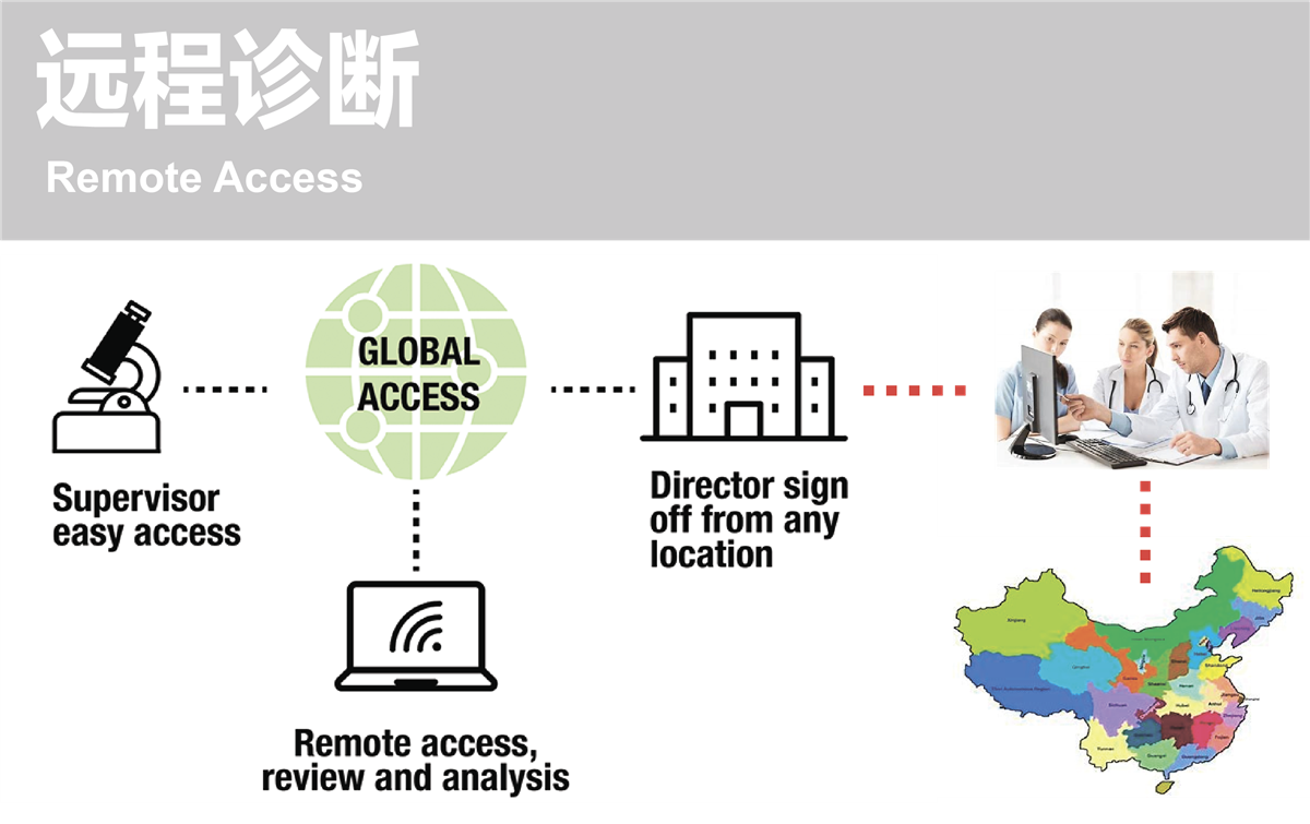 - 高清五百万像素的相机, 多色多图层的FISH 取像, 图像修饰, 标记批注, 产生报告.