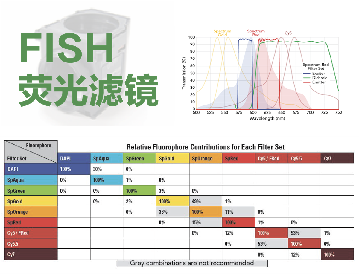 本公司提供所有厂牌显微镜使用的 FISH 专用的荧光滤镜, 同时, 提供性能佳的荧光光源.