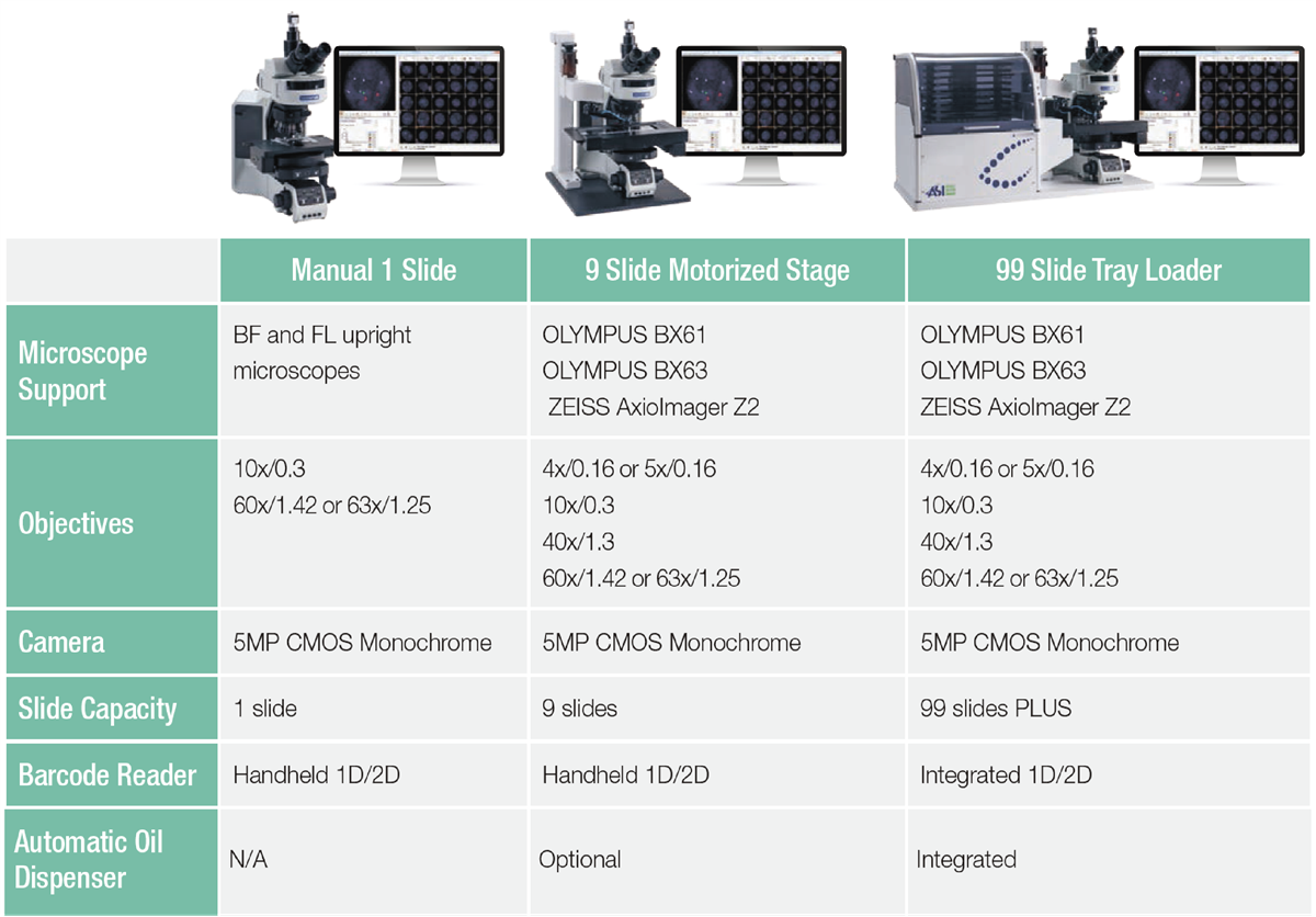 用户只要搭载适合的显微镜, 如显微镜搭载电动载物台或送片匣, 可以从手动系统延伸到高通量自动扫描系统。