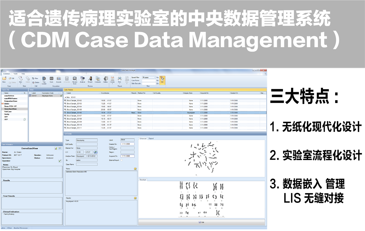 4). 同时通过数百用户的使用实务经验, 导入 CDM 数据管控加速核型分析与报告产出的高效工作流程, 让繁琐的核型比对分析变得经松简易, 让比对分析结果取得精准诊断的要求. 此外, 核型分析软件也保留让诊断人员做最后的诊断审视, 落实诊断的严谨要求.