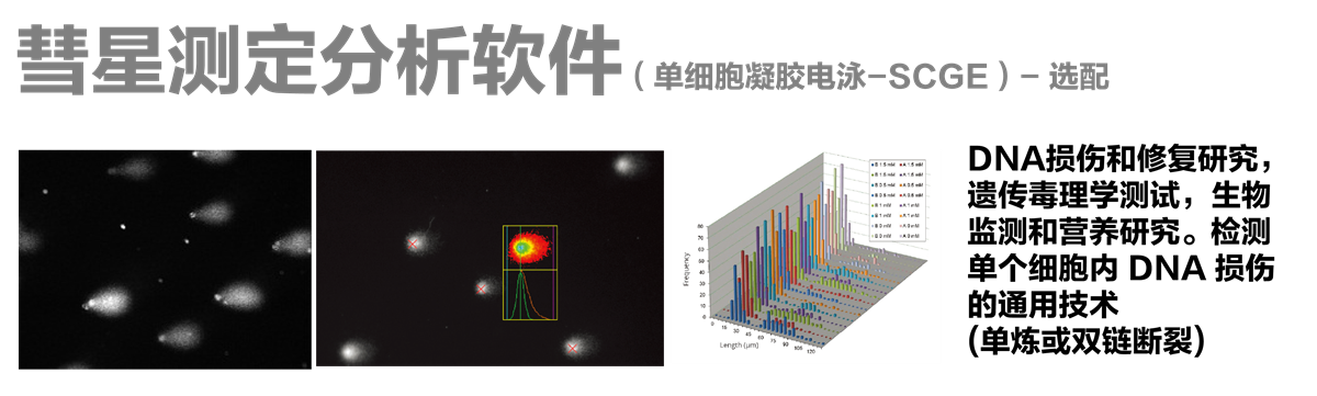 ASI 可以导入Comet Assay IV (Instem/UK) 彗星测定法(也称为单细胞凝胶电泳-SCGE)是一种确定单细胞中DNA损伤量的方法。 该测定法具有广泛的用途,包括DNA损伤和修复研究,遗传毒理学测试,生物监测和营养研究。