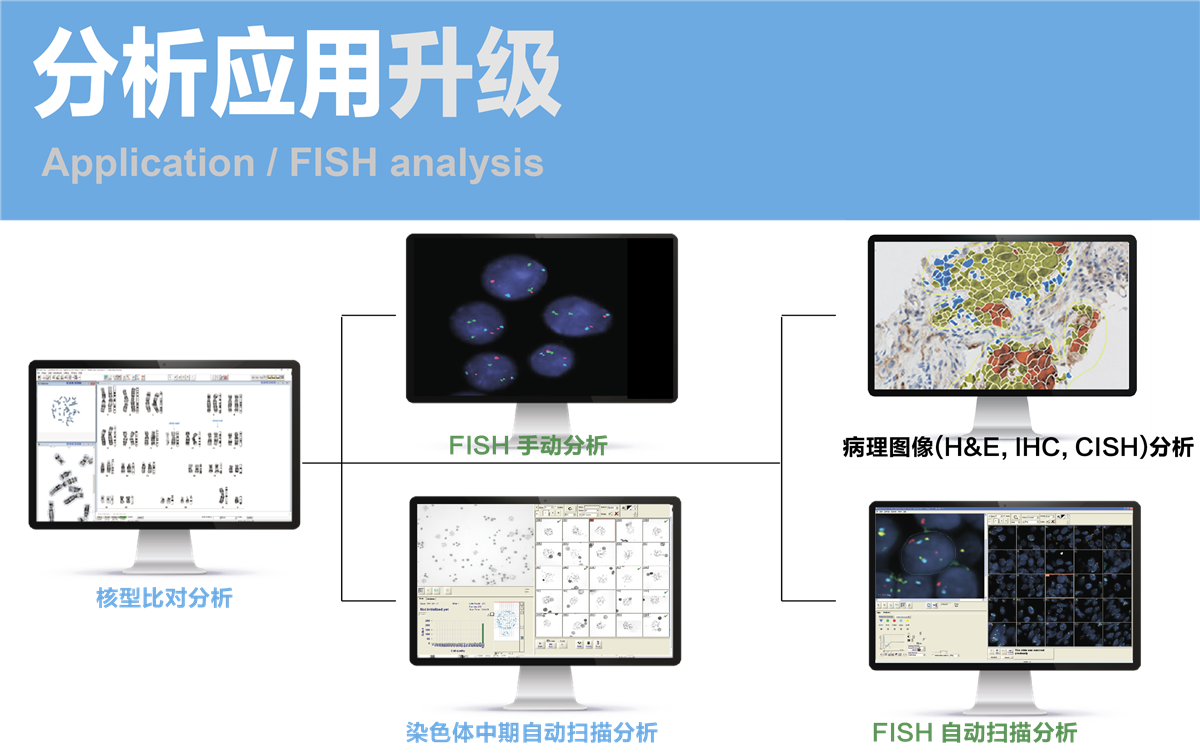 精确且快速的临床分析结果, 提升诊断质量, 无论从核型分析到荧光点计数, 无论从手动图像采集到全自动扫描, 都可以优化整体工作流水线, 达到高效率, 让各类型实验室的分析工作能更灵活轻松, 省时省力.