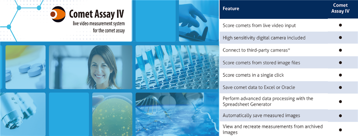 ASI 可以导入Comet Assay IV (Instem/UK) 彗星测定法(也称为单细胞凝胶电泳-SCGE)是一种确定单细胞中DNA损伤量的方法。 该测定法具有广泛的用途,包括DNA损伤和修复研究,遗传毒理学测试,生物监测和营养研究。